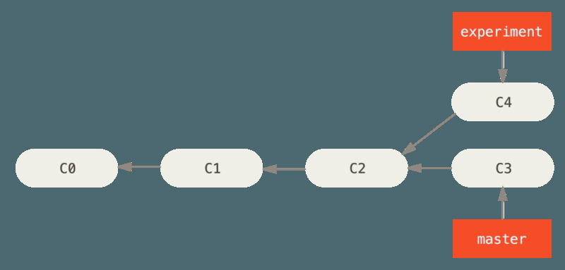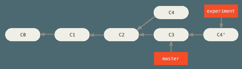 变基后,可快进合并分支(当前分支experiment 执行git rebase master)