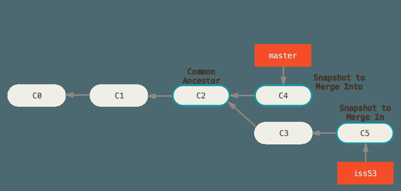 - 要合并的分支不在当前分支的直接下游,不可使用快进合并的情况下,则使用三方合并