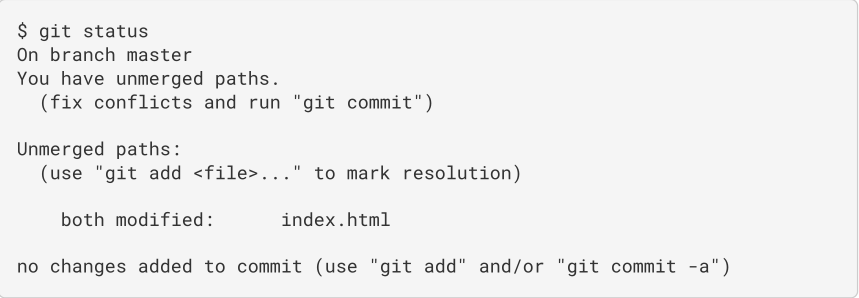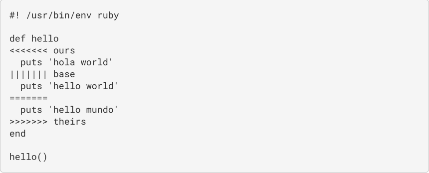 - 未解决冲突的文件,Git将自动在冲突的部分加上不同版本的修改信息