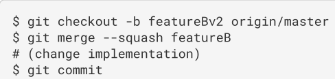 git merge --squash <branch>将branch的所有提交压缩成一个变更集,应用到当前分支,不会自动生成提交,合并后的提交只会有一个父提交