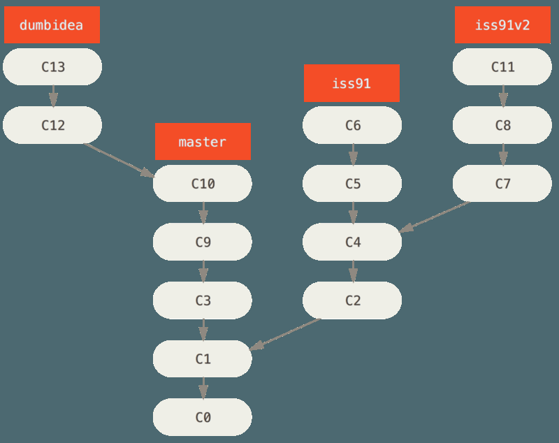 因为 Git 使用简单的三方合并,所以就算在一段较长的时间内,反复把一个分支合并入另一个分支,也不是什么难事。 也就是说,在整个项目开发周期的不同阶段,你可以同时拥有多个开放的分支;你可以定期地把某些特性分支合并入其他分支中。 许多使用 Git 的开发者都喜欢使用这种方式来工作,比如只在 master 分支上保留完全稳定的代码——有可能仅仅是已经发布或即将发布的代码。他们还有一些名为 develop 或者 next 的平行分支,被用来做后续开发或者测试稳定性——这些分支不必保持绝对稳定,但是一旦达到稳定状态,它们就可以被合并入 master 分支了。 这样,在确保这些已完成的特性分支(短期分支,比如之前的 iss53 分支)能够通过所有测试,并且不会引入更多 bug 之后,就可以合并入主干分支中,等待下一次的发布。 事实上我们刚才讨论的,是随着你的提交而不断右移的指针。 稳定分支的指针总是在提交历史中落后一大截,而前沿分支的指针往往比较靠前。 通常把他们想象成流水线(work silos)可能更好理解一点,那些经过测试考验的提交会被遴选到更加稳定的流水线上去。 你可以用这种方法维护不同层次的稳定性。 一些大型项目还有一个 proposed(建议) 或 pu: proposed updates(建议更新)分支,它可能因包含一些不成熟的内容而不能进入 next 或者 master 分支。 这么做的目的是使你的分支具有不同级别的稳定性;当它们具有一定程度的稳定性后,再把它们合并入具有更高级别稳定性的分支中。 再次强调一下,使用多个长期分支的方法并非必要,但是这么做通常很有帮助,尤其是当你在一个非常庞大或者复杂的项目中工作时。